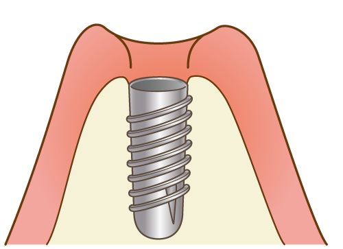 局所麻酔下で歯肉を切開し、骨に穴を開けてインプラント体を埋め込みます。