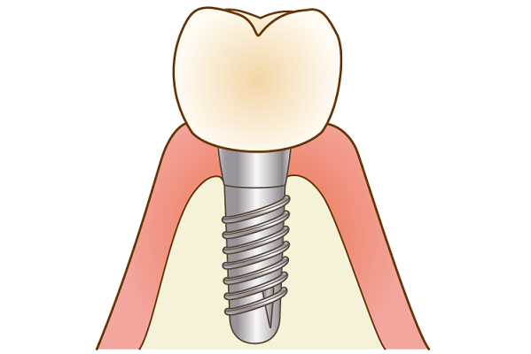 インプラントはチタン製で、骨と強固に結合する性質があります。ただし、埋入後すぐに強い力をかけると結合が不安定になるため、骨としっかり結合するまで治癒期間(通常2〜6ヶ月程度)を設けます。 この間、仮歯を装着して見た目や日常生活に支障が出ないよう配慮します。